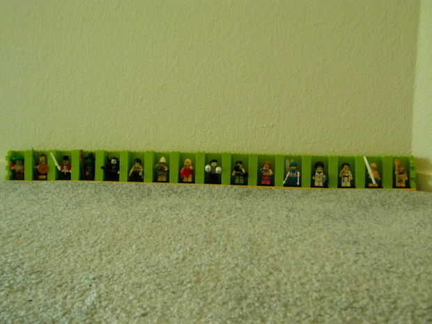 LEGO hace una pantalla estuche pero tiene 15 minifigs. 15. ¿Es grave LEGO? 15?! Pensé que esto era bastante tonto puesto que podría venden suckas como rosquillas si podían mantener sólo uno más y ser compatible con la serie coleccionable. Lo que quería era una manera de exhibir las minifigs en un formato de 4 x 4. Pensé en comprar una caja de vidrio de tiro pero entonces tendría que averiguar cómo fijar la placa a él para no caer las minifigs. De repente me golpeó, ¿por qué no podía yo hacer todo de LEGO?