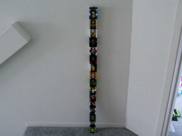 Me puse a trabajar y pronto se dio cuenta de que la forma más fácil para hacer una vitrina iba a implicar módulos individuales para cada minifig. También entendí que al hacer cada módulo que podía personalizar el color y el patrón de la minifig se muestra en él. Mi objetivo inicial era que a cada caso el color de la serie, amarillo para la primera, azul para la segunda, etc. pero no lo suficiente en cada color para hacerlo todavía.