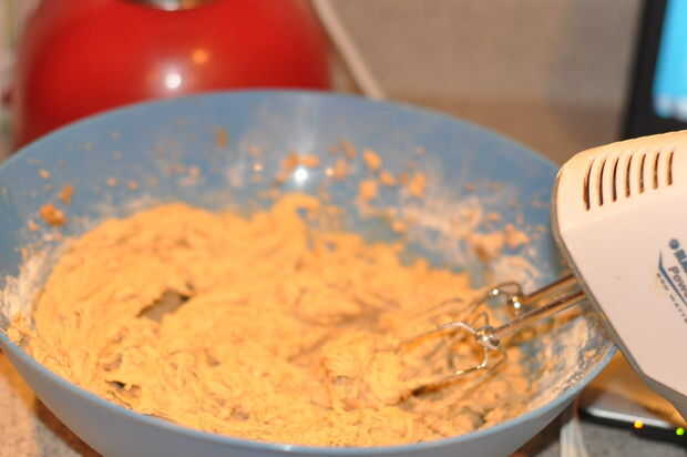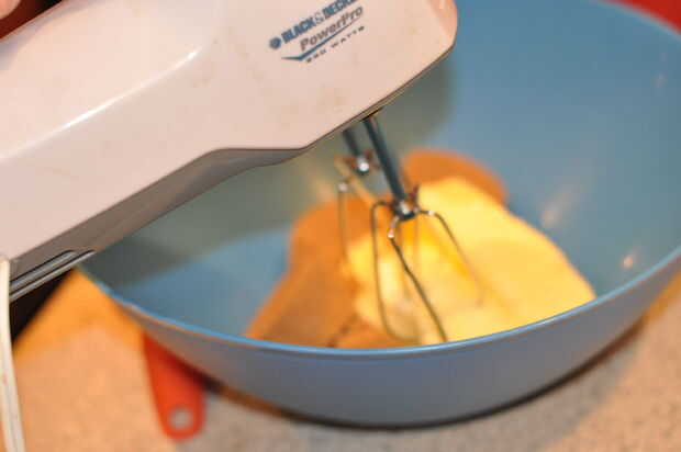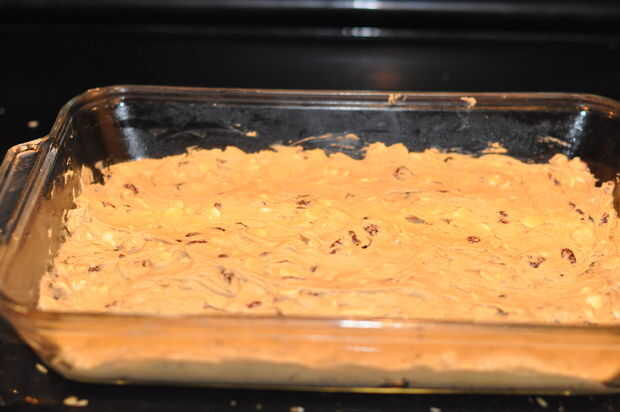 Una vez que termine de batir pobres en una bien engrasada 9 x 13 (tamaño aprox.) para hornear pan y usen una espátula para alisar hacia fuera uniformemente en la bandeja. Luego pegar su bandeja en el horno durante unos 30-40 minutos (hice 30 pero también estaba aterrorizado de quemarla).