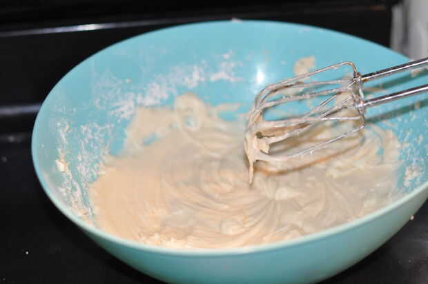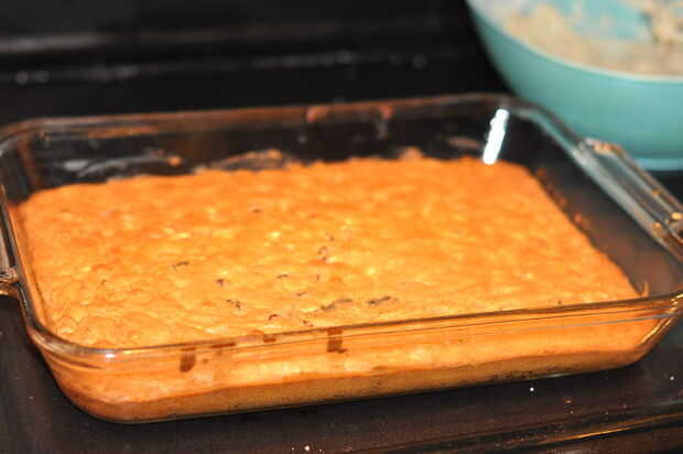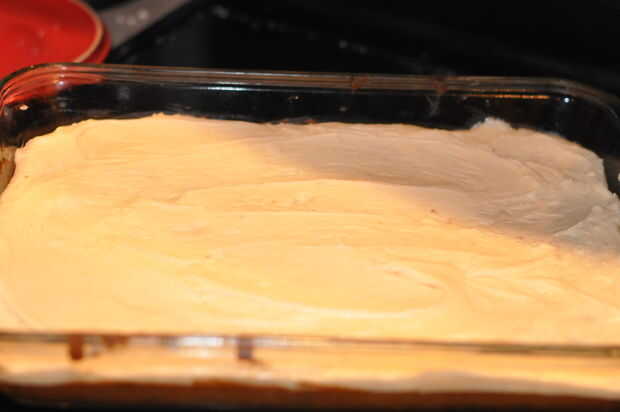 Una vez que el glaseado se hace y se hace tu pastel cocina y propagación se ha enfriado la guinda con una espátula sobre el pastel, no necesita ser perfectamente alisadas pero asegúrese de que cubre sus bordes y esquinas. Luego tomar y espolvorear de arándanos por encima de la guinda (uso como siempre desea que la receta llama para 1/4 de taza pero creo utilizar más que).