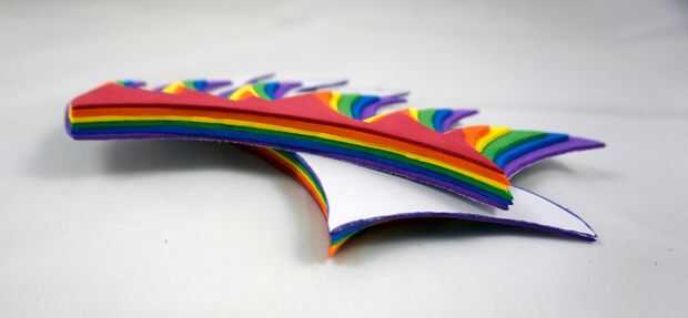 Pasemos al siguiente color y cortar dos piezas idénticas, ligeramente más pequeño que el primer color. Seguir adelante hasta que hayas cortado todas sus piezas.