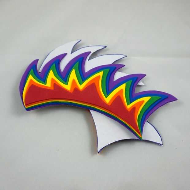 Comience con el color que desea ser la pieza más grande (hemos utilizado púrpura). Cortar la forma de la mohawk trace en una segunda pieza del mismo color de la espuma del arte y recortar demasiado.