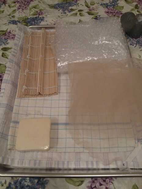 Establecer su impermeabilización, luego la toalla sobre una mesa nuestro contador usted será cómodo trabajando en un largo período. También decidí poner mi proyecto en una placa para horno grande para ayudar a mantener el agua contenida. A continuación, coloque su abrigo de burbuja y su resistencia.