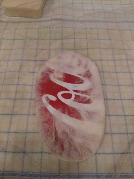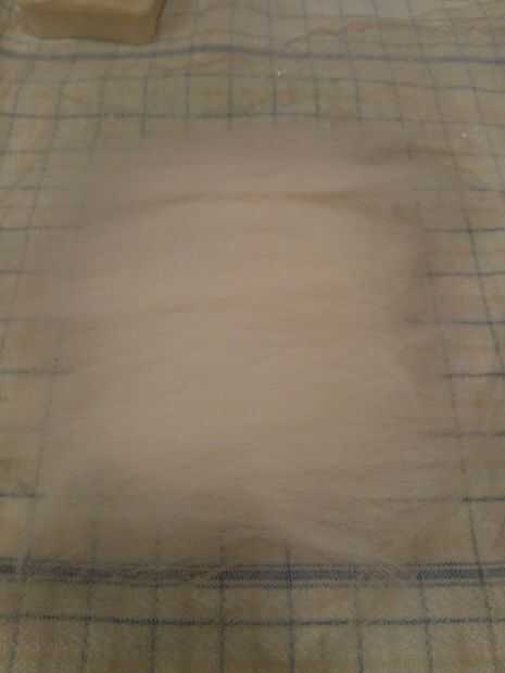 Una vez que se suavizan los bordes, capa en algunas lanas, primero a lo largo y luego dispositivo como última vez. Cubre con su red, mojado abajo y acariciar en lugar al igual que con el otro lado.