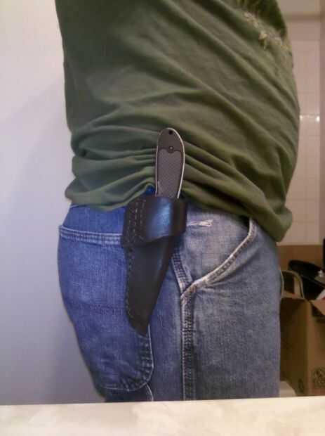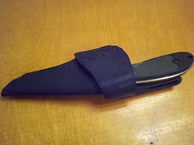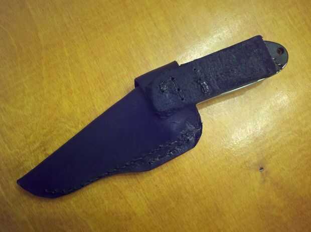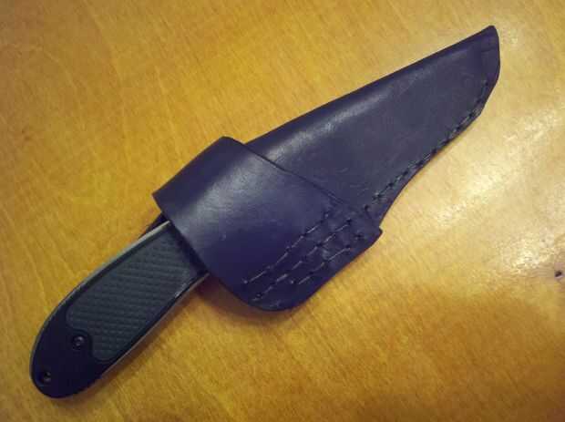 Compré un cuchillo viejo nogal americano pegatina de Ohio. Está hecho de acero de buena calidad y es menos de $15, pero necesitan un caso. Como la mayoría de los cuchillos de cocina, vino con una funda común de tarjeta. Decidí modificar que el mangui