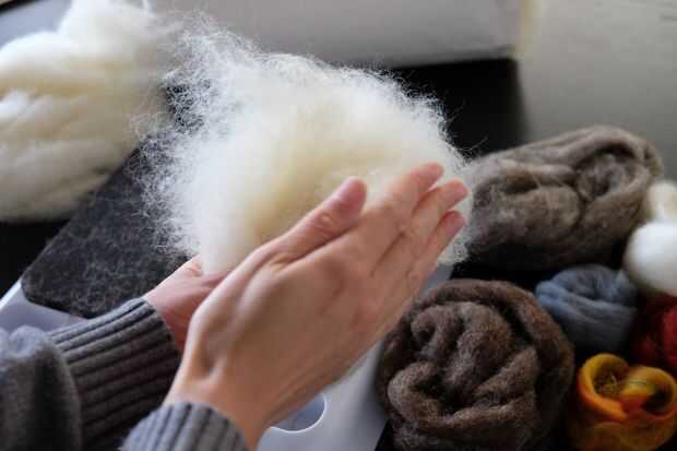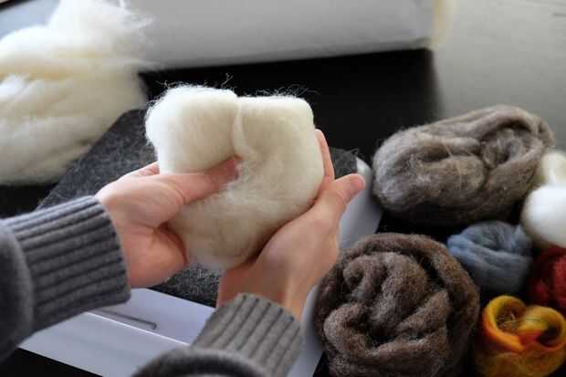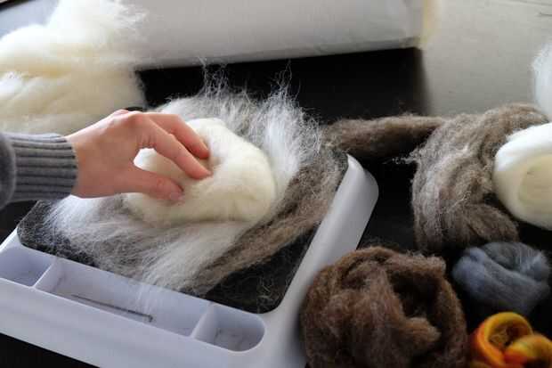 • Añadir o tomar a algunos de relleno para alcanzar el tamaño deseado (encogimientos de lana cuando es felted por cerca de 30%) La hora de elegir qué tan grande debe ser su forma plegada relleno, medir los colores establecidos. Piensa en esto como un regalo que envuelve: tendrás los colores de lana para envolver el relleno sin mucho exceso o desperdicio de lana.