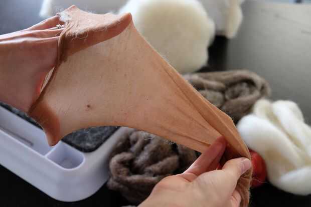 Consejos: Las pantimedias mantendrá su lana firmemente juntos para fieltros juntos ayudando a mantener la tensión en la lana. Manguera panty son larga, así que no pongas una piedra larga lateralmente en pantimedias, será doble en él es uno mismo durante el proceso de afieltrado.