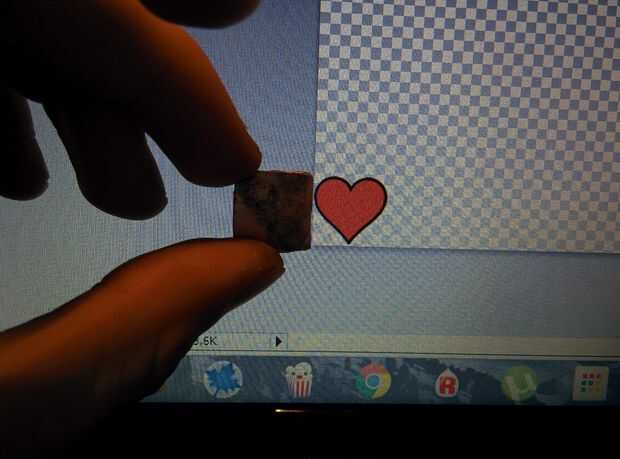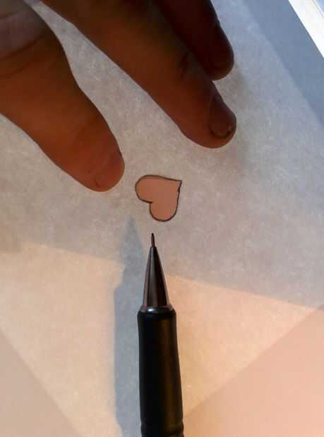Cuando llegué el grueso quería, solía mi ordenador dibuja un corazón sólo lo suficientemente pequeño como para caber en la Plaza ahora plana. Luego coloqué un trozo de papel en la pantalla y (muy!) ligeramente había trazado el contorno del corazón. Tenga cuidado de no dañar la pantalla!
