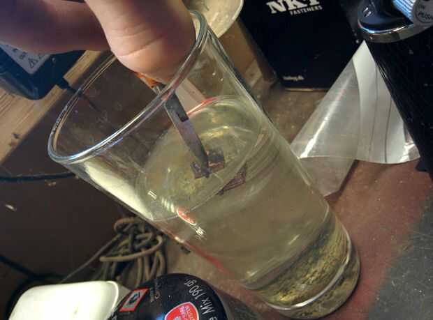 Cortar el corazón y pegar a la palanquilla. Usé una fina capa de pegamento de madera. Asegúrese de que hay metal todo el contorno, no quieres caer corto después de empezar a formar.