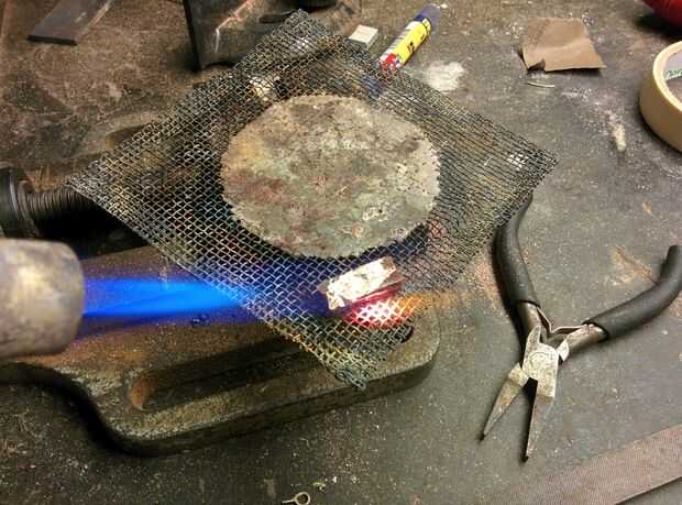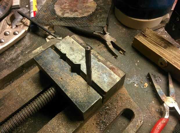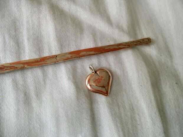 Con rebabas, archivos y diferentes ejercicios hice un contorno en la superficie de la palanquilla. Esto reveló las capas, al igual que con el corazón. Luego con un martillo, pasé horas de trabajo hasta una barra, torcí y había martillado plana. Después de un poco de presentación, tenía una barra de modelado Mokume Gane. Creo que voy a hacer esto en un anillo más adelante.
