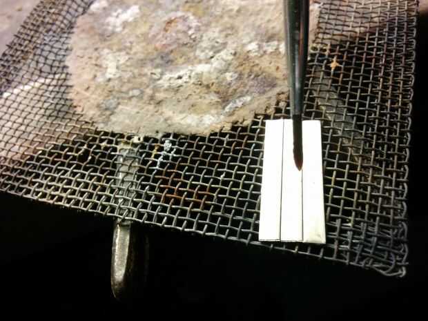 Lamentablemente no tengo suficiente hoja de plata del real, pero tenía unas tiras ancho 4mm, que soldado en láminas.
