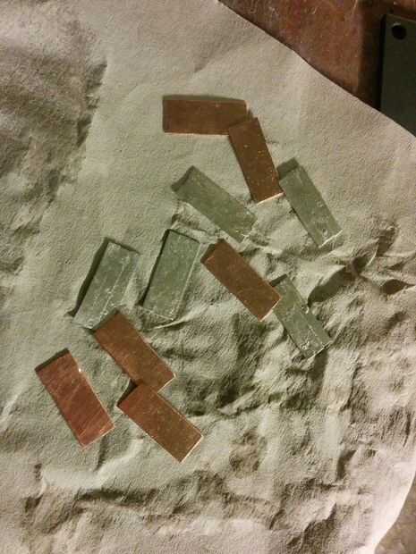 Dependiendo de cómo se ven tus hojas de cobre, te recomiendo lijar ligeramente para limpiar la superficie de óxidos. No deja rayas demasiado profundas, utilice papel de lija de grano 400 a 600.