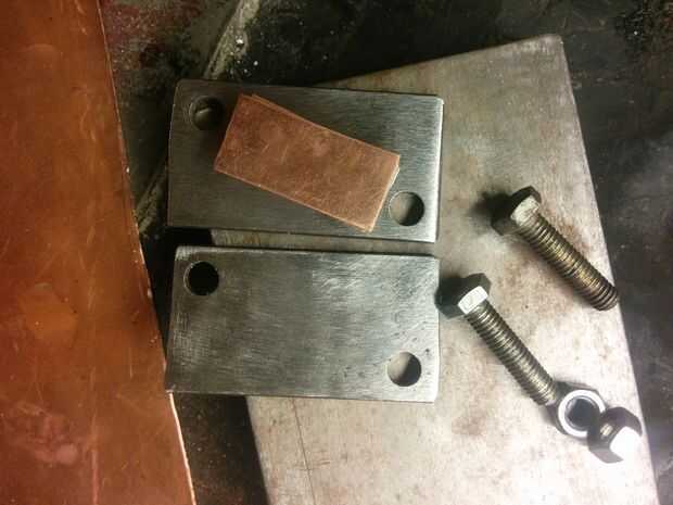 Necesitas dos placas de presión para el billete del emparedado. He utilizado unos 4mm de acero normal, pero hubiera sido mejor con 5-8 mm de acero inoxidable.