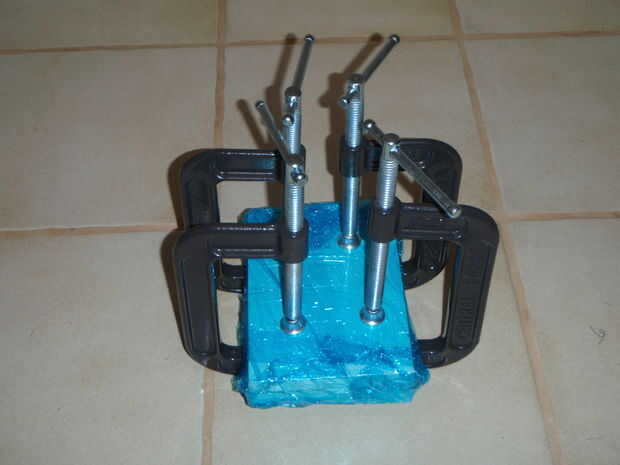 - La abrazadera bien tenso y con sus c-pinzas (o presione en su prensa de taller)
