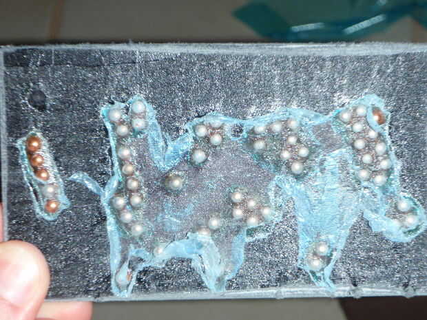 Como que pulir la superficie, usted comenzará a ver el patrón. La superficie estampada aparece mate y mate, pero lo arreglamos poco.