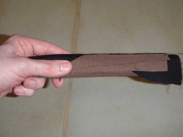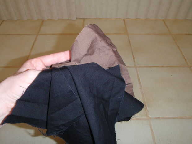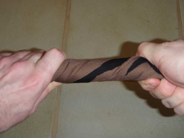 Aquí es un patrón más que tipos de steampunk podría sobre todo aprecias. El patrón de giro puede parecer realmente un montón como la madera, si se hace bien. El ejemplo siguiente se hizo con material de sábana de algodón marrón chocolate y negro en una proporción de 1 a 1. En retrospectiva, una 4 hojas de marrón a 1 hoja de negro probablemente habría funcionado mejor. Yo no pude fotografiar esta técnica debido a la dejadez involucrado en esto, así que voy a describir lo mejor que pueda.