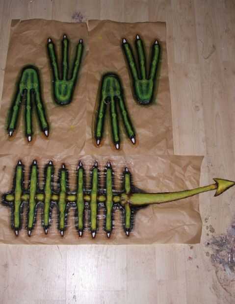 Irán a las manos en su frente, el hueso posterior abajo de la espalda (obviamente). Puede haber unos cuernos y una pintura de cuerpo verde.