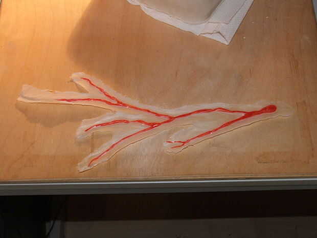 Para hacer las venas rápidas, poner tres capas de papel parafinado o látex hacia abajo en un poco de cera. Cada uno deje secar antes de agregar la siguiente.