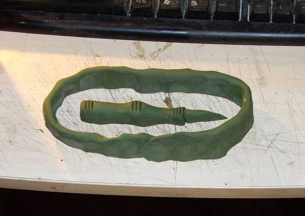 Para que los dedos o las manos es fácil, simplemente estirar algunos chorizos de arcilla, les llenar hacia abajo sobre una superficie lisa no porosa y luego prod alrededor con algunos instrumentos hacer las arrugas y lo que no. Usé algunos pequeños conos de arcilla a garras de forma. Liso hacia abajo los bordes para evitar la masiva debilita.