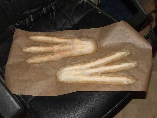 Aquí son un conjunto de manos de cast que se utilizarán como parte del traje. Ellos hicieron exactamente lo mismo.