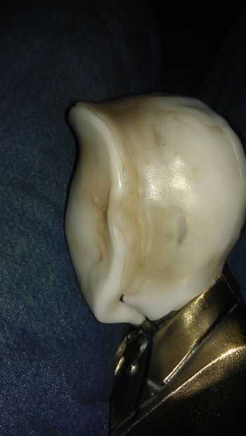esto es una nueva técnica para hacer máscaras de ajuste personalizado de caliente derriten pegamento e hilo.  La base es la forma principal del mismo tamaño que mi cabeza, para asegurarse de que mi cabeza luego encaja en la máscara.  (La base sí mism