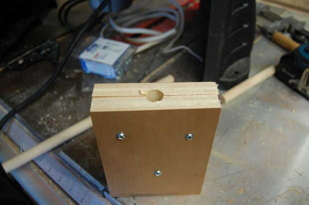 Como el pasador es el mismo diámetro que el agujero que encamina, debe tener muy buena alineación en el formulario. Una vez que está sujeta, necesitará atornillarlo en su lugar y quitar el pasador.