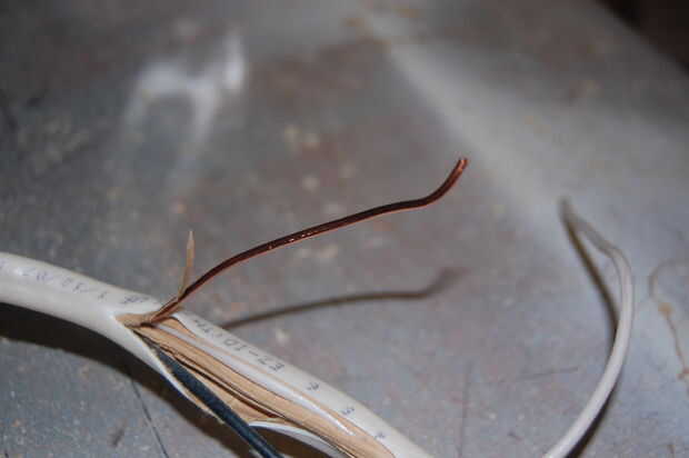 Tome su tierra cable de romex y cortar alrededor de una pulgada y media a 2 pulgadas de la misma y doblar por la mitad.