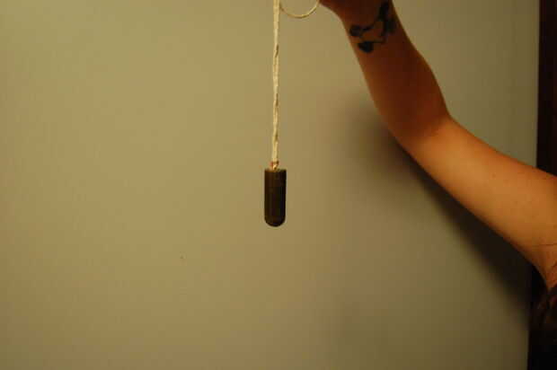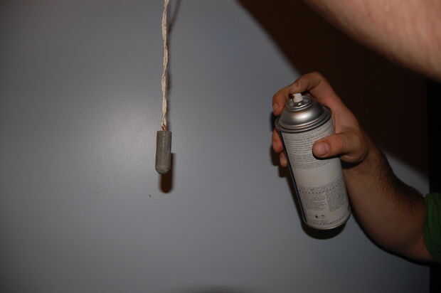 Ahora que lo se limpia todo bien, colgar el colgante de una cadena y empezar a recubrir con alguna laca o un sellador de concreto. He utilizado laca, porque siempre tengo un par de latas colgando alrededor.
