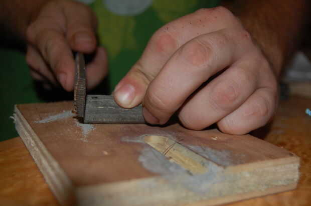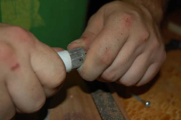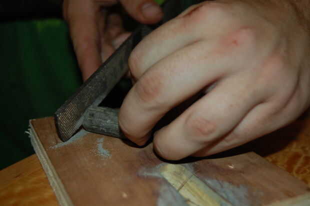 Tome un archivo o una parte del papel de lija y cuadrado encima de la parte superior de la pieza, luego lijar el colgante todo con lija de 220 hasta su agradable y suave.