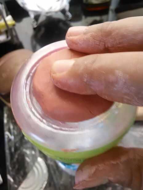 Presione suavemente pero con firmeza sobre la forma. Utilice sus dedos para hacer la forma externa en un liso redondo. Los dedos pueden ser sumergidos en agua para reparar grietas que aparecen en el molde.