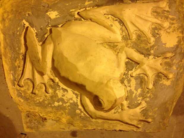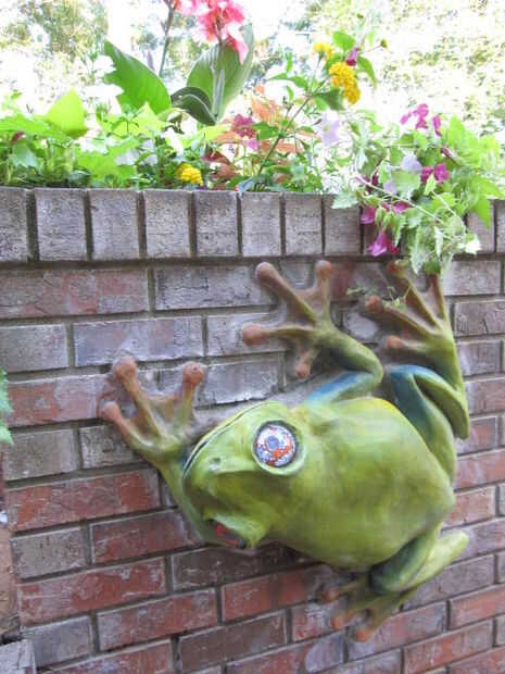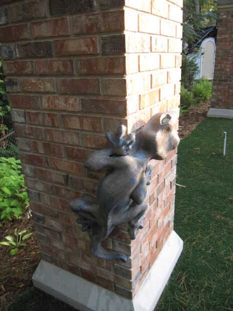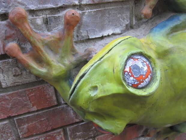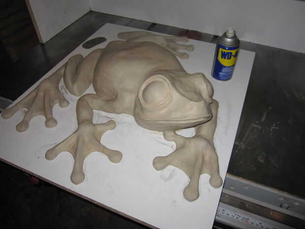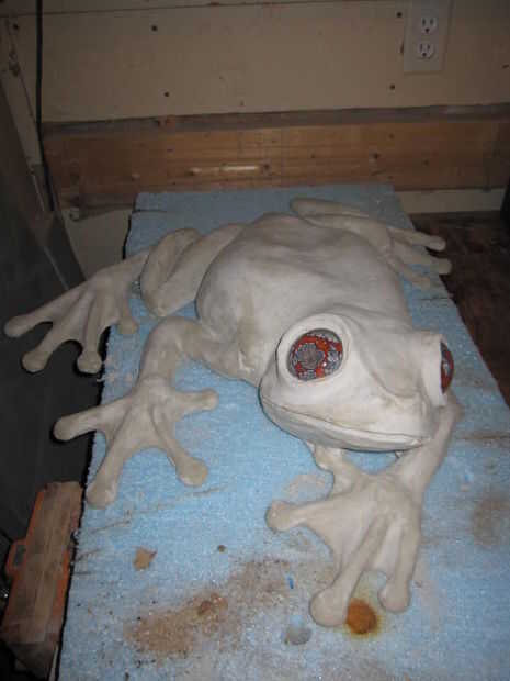 molde concreto lagarto y Sapo, con ojos de vidrio de soplado mano. Primero empecé con la talla a positivo de la critter (foto #6), la arcilla que roció con una goma de la dos parte. una vez tuve la negativa hice una goma maciza positiva otra vez (foto #7). Ahora encima de la goma positivo pude pintar en muchas capas de látex de caucho (Foto #8) y antes de quitar la goma de látex de lo positivo. Hice un respaldo de espuma de 2 lb para el látex de caucho bajo el peso del concreto (Foto #9). Ahora tuve mi molde, a la bruja podía echados concreto (foto 10), sino antes de eso tuve que hacer unos ojos de vidrio soplado a mano para los bichos que cobran vida! Cuando llegó al casting, fue un trabajo de dos personas, con una cantidad extrema de fibra en mi mezcla de hormigón, una persona sería mantener los ojos en su lugar mientras otro funcionaría el concreto en todas las partes pequeñas de la lagartija o rana. Al día siguiente he quitado del molde y recortar de cualquier forma concreta los bordes no deseados, y siguió con una pintura concreta al proyecto final (foto #11).