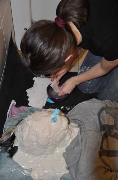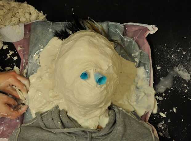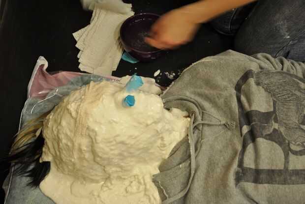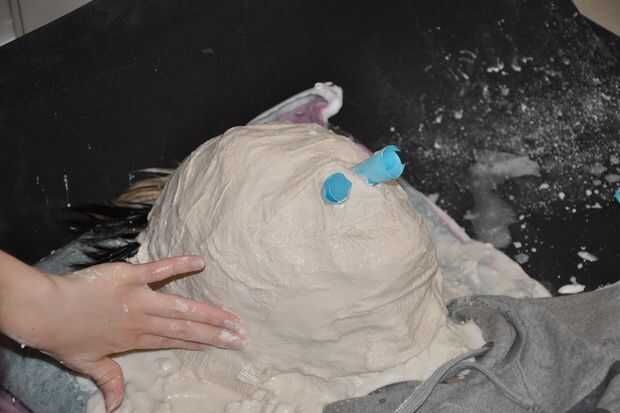 Asegúrese de que lo tienen grandes y pequeños trozos de vendas de yeso, utilizar las pequeñas sobre y debajo de la nariz.