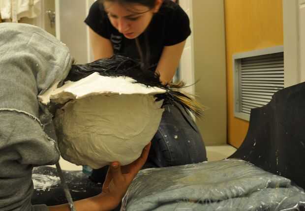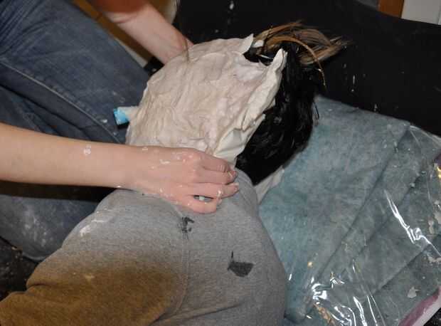 usando goma de silicona para hacer un molde de una cara u otra parte del cuerpo.