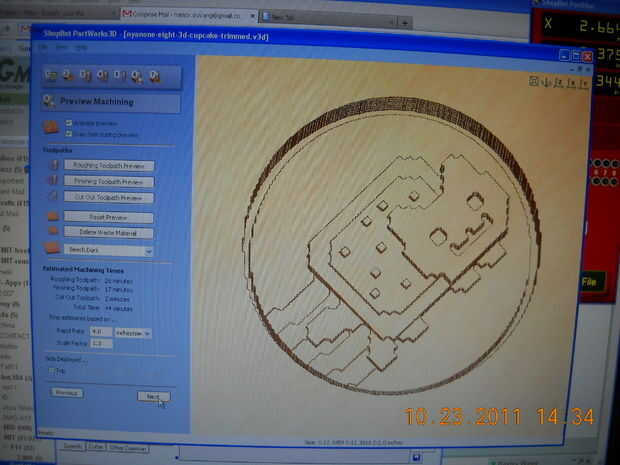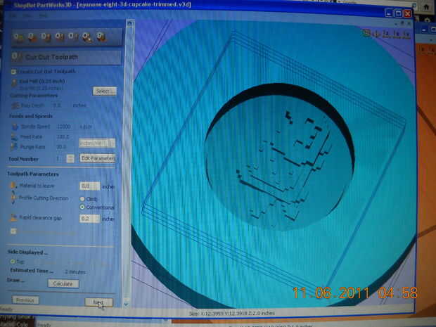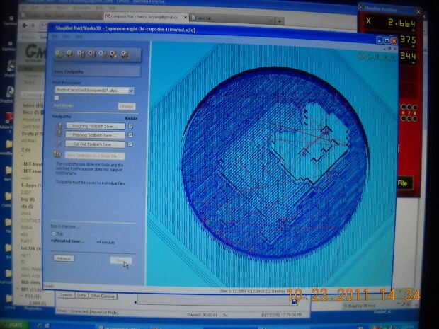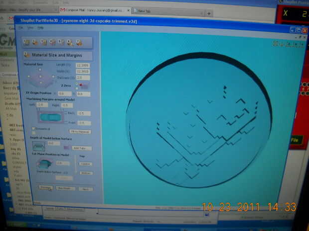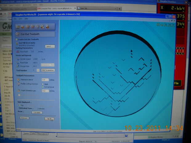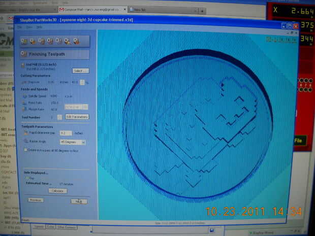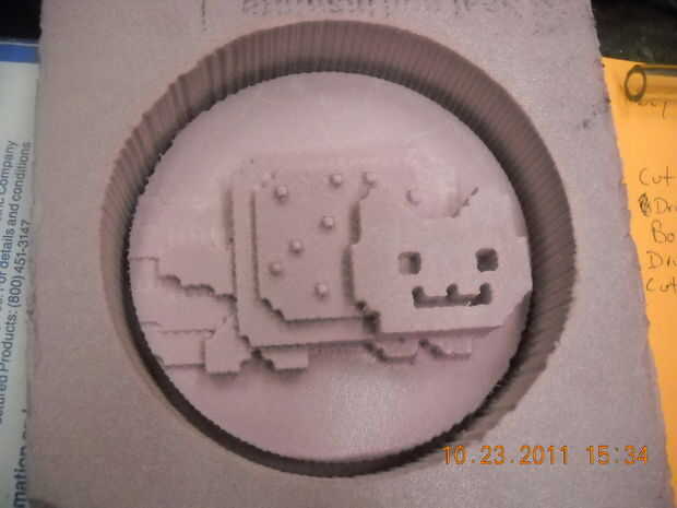 Estaba usando el shopbot en el media lab del MIT, usé coleccionables. También he usado a masterCAM, donde tienes que dibujar las trayectorias de herramienta a mano. Esto es realmente increíblemente difícil hacerlo con nyancat porque todos los caminos terminan en el mismo lugar y MasterCAM es todo confuso. UGH. Conseguir alguna gente UX en ese software...
