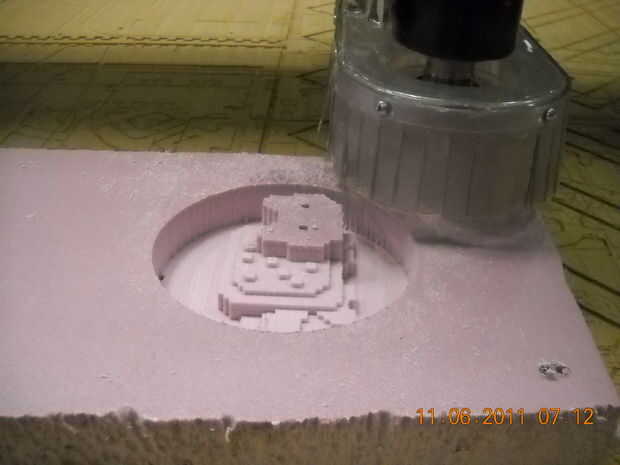 Para fresado, puede utilizar la espuma del aislamiento, que es barato y fácil de molino (también usado extensivamente en modelos de la arquitectura). La espuma es agradable ya que la silicona se libera fácilmente de él. Simplemente no respirar demasiado del molino polvo en.