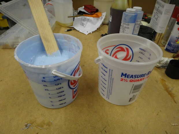 Saber cuánto silicón necesita verter un lado calcular el volumen de tu caja en cúbicos pulgadas y convertir a galones. Dividir el número de galones por la mitad y cuanta silicona tendrá que verter su primera cara. Obviamente su parte desplazará algunos silicona así que tratar de estimar y réstelo. Silicona es generalmente una relación 10:1 de silicona para catalizador en peso, pero Compruebe cualquier producto que usted está usando. También debe ser muy bien mezclado. Usando el método de "dos cubo", mida su silicona y catalizador en un cubo y mezclar. Luego se transfieren a otro recipiente para hacer la mezcla final. Esto garantiza que no tendrás ninguno sin mezclar. Mezclar el silicón y el catalizador hasta que hay no hay rayas blancas.