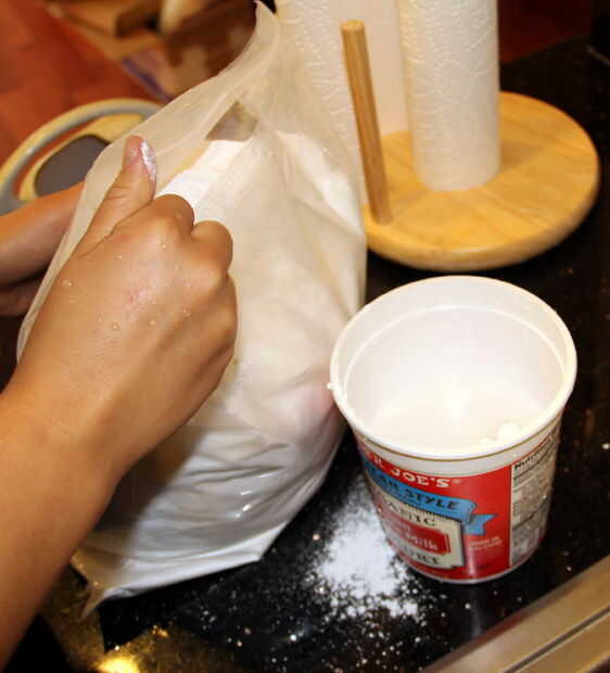 Mezcla un poco de yeso al igual que mezcla el alginato. Si hay direcciones que vienen con, seguirlos. De lo contrario, mezclé minas a una agradable textura cremosa. Usé valor de un yogur-envase lleno yeso para rellenar mi cara.