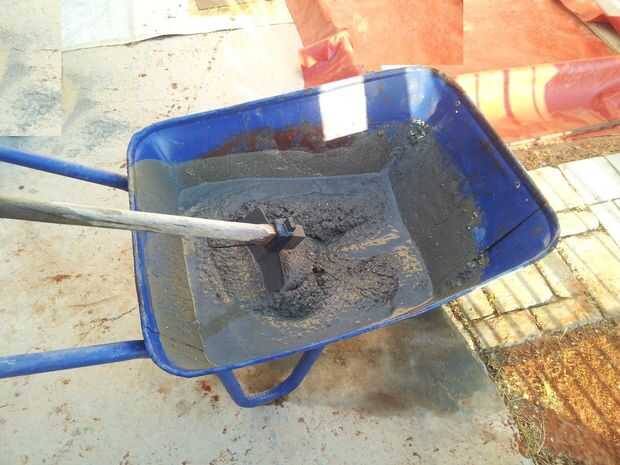 Para mi molde he usado cemento, arena de 15kg de 5 kg, 5 ~ 10kg gravilla. La cantidad de concreto que va a get\need para una losa varía en el tamaño de su molde. Experimento...