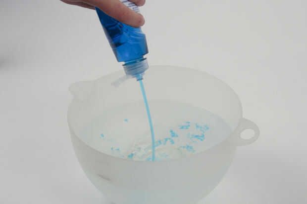 Esto no es una ciencia exacta, uso jabón azul porque me permite ver cuánto he añadido a un baño de agua, aproximado de que utilicé 4 onzas de jabón en 64 onzas de agua.