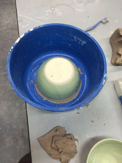 Para evitar que la taza flotante, una vez que se vierte el yeso, llenan el interior del recipiente de arcilla y asegúrelo a la parte inferior de la cubeta. Asegúrese de sellar la grieta con una pequeña cantidad de arcilla extra. Entonces, cepillo diluir jabón líquido (mano, plato, servicio de lavandería, etc...) en todas las superficies dentro de la cubeta. Limpie lejos exceso jabón con una toalla de papel. El jabón actúa como un lanzamiento para el yeso una vez que se encuentra.