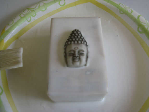 Cuando haya terminado con la capa de pegamento, pero antes de que el pegamento se seca en la parte superior, coloque la pieza de acento y darle una capa fina de pegamento, así.