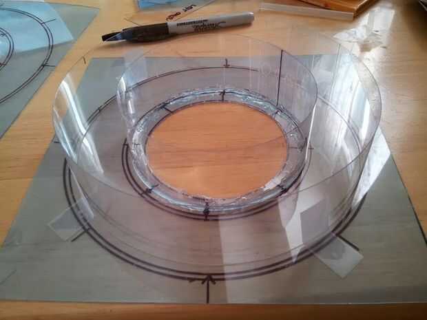 Pegar el cilindro grande a la placa base. La foto inferior muestra lo que debe.
