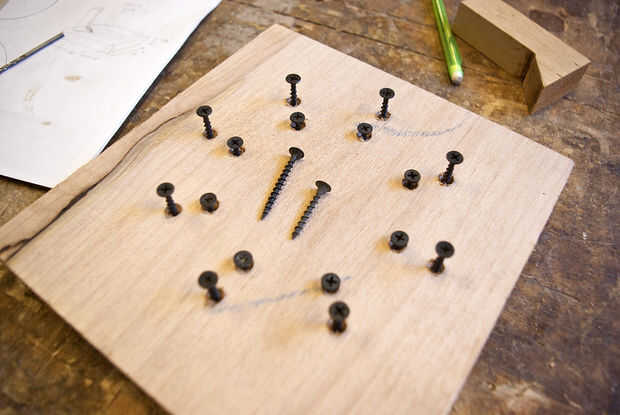 Para mantener la madera de partir, asegúrese de que todos los agujeros son previamente perforados. Los tornillos en la parte inferior de la placa base deben rebajar así la forma es plana en la parte inferior.