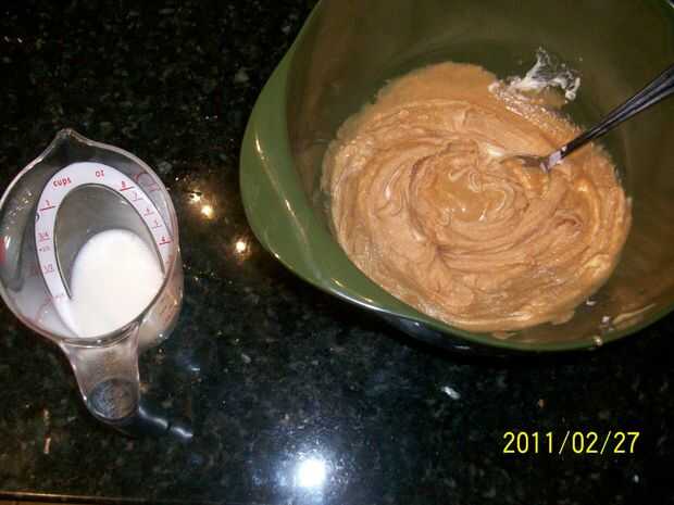 Mezcla todo este junto, hasta que su aireado como la imagen. Esto hará más fácil de esparcir.