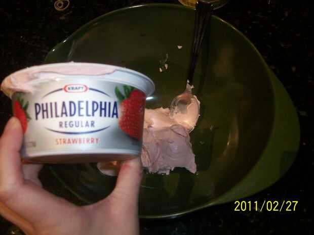 - Primero agregue media taza de queso crema, cualquier sabor, hay un sabor de tuerca de la miel que phlidelphia hace sea muy bien con esta receta.
