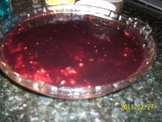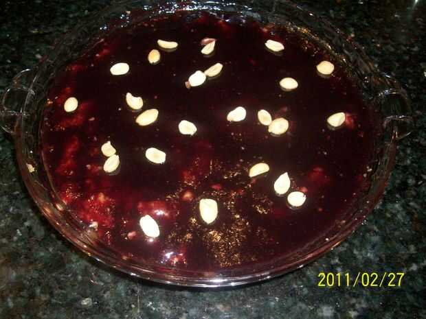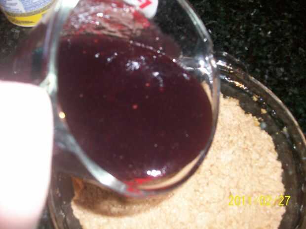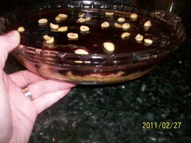 Pour ontop de tarta a partir de centro y en una inclinación del círculo al pie moverse hacia arriba y hacia abajo la jalea para su uniforme. De esta manera usted será no mezclar la mezcla de mantequilla de maní y la jalea y se mantendrá las capas.
