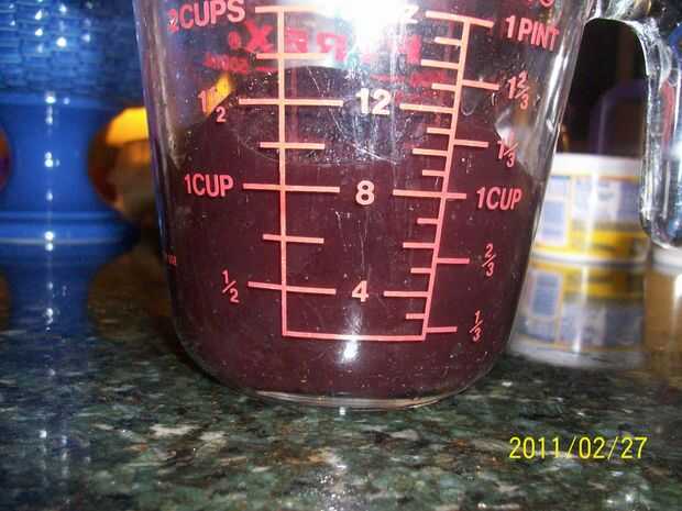 Una taza de medir, fundir, no hirviendo, aproximadamente 1 minuto 30 segundos en microondas.