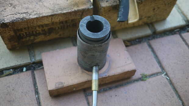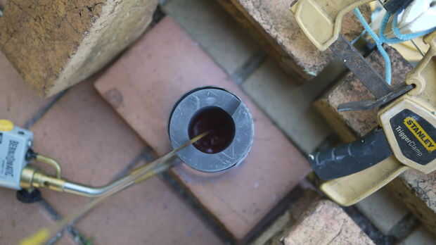 Durante el proceso de calentamiento coloqué algunos pequeños pedazos de cobre en la parte superior del crisol para acelerar las cosas para arriba. Añadir la varilla soldadura fuerte poco a poco hasta que se derrita. Mejor para permitir que más de menos.