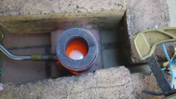 Tenga en cuenta que la antorcha en ángulo ligeramente. Esto permite que fluya alrededor del lado del crisol más bien golpear a un lado y un solo lado de la calefacción la llama.