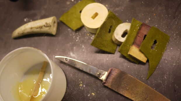 Use un cepillo sacrificial o trozo de madera colocar una capa gruesa de pegamento entre cada espaciador o un pedazo de hueso, madera en el mango. Incluyen una buena capa entre el protector y el distanciador primer.